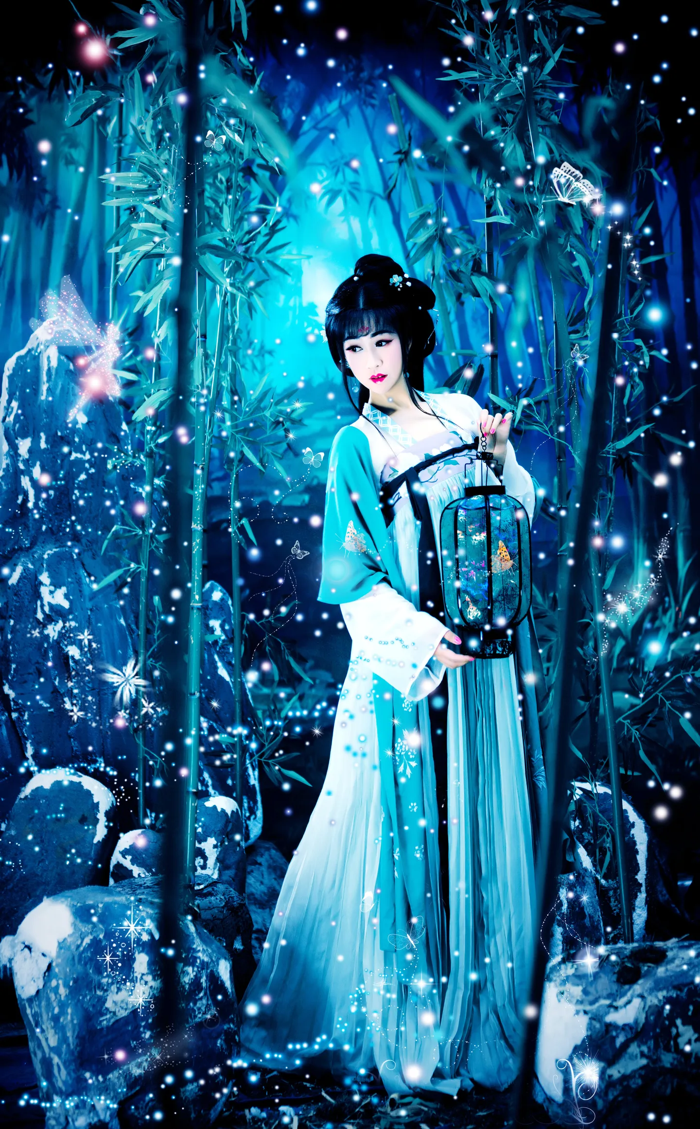 缤纷的飞雪、俏皮的精灵、舞动的灵蝶~ 还有精灵和蝴蝶飞过后留下的点点灵光~ 片片整体都变的灵动了呢,谢谢越梦大神 (表情)