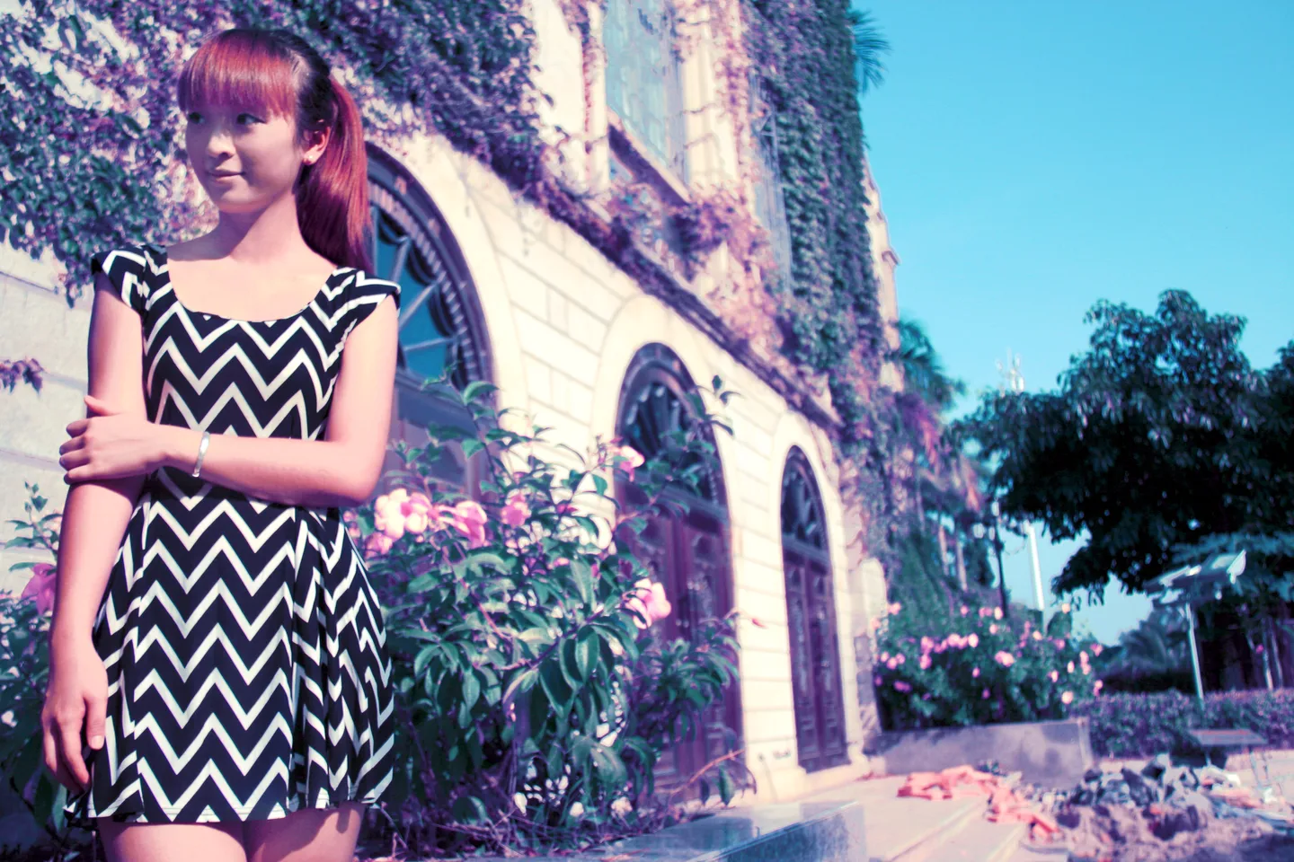 如果照片里女孩穿的是超级鲜艳的裙子,会有很好的效果