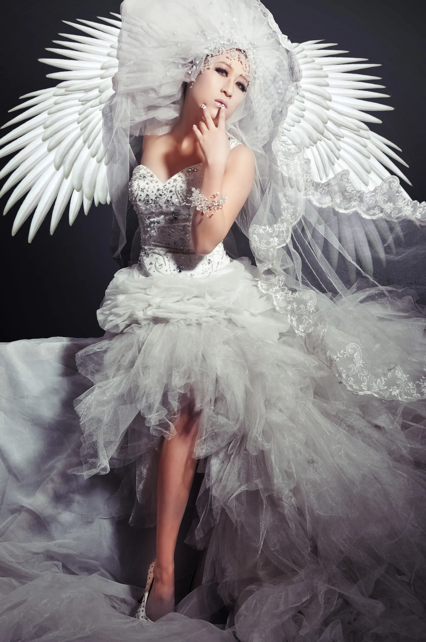 因为下面的脚暗了,没有上面的肤色那么光滑、剔透~~看着不搭咩~~