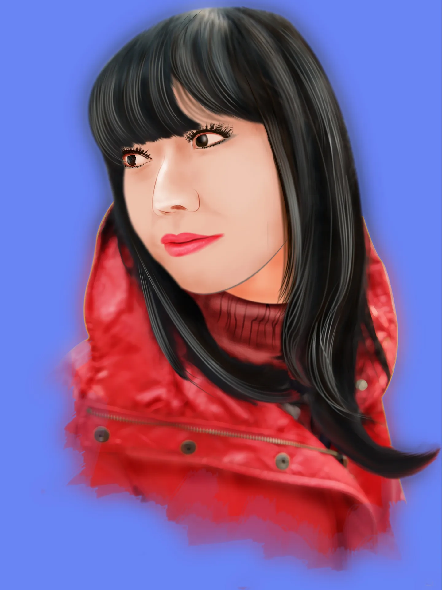 (表情)这个跟原图一样吗?我怎么看到衣服领子不太一样……原图是露肩,画完后是穿外套……呵呵,不过画得图图蛮好看的……推推推