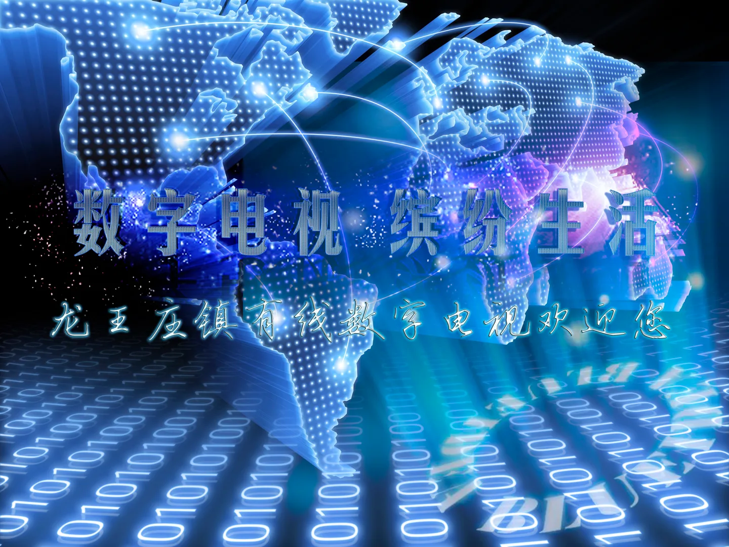 1.用途:有线电视机顶盒开机欢迎画面。 2.需要加入以下字: 数字电视 缤纷生活 龙王庄镇有线数字电视欢迎您 3.要求:协调,美观,大方,有科技感。 4.背景可适当修改。如果您有更好的背景素材,可以直接把这张给换掉。 5.谢谢。
