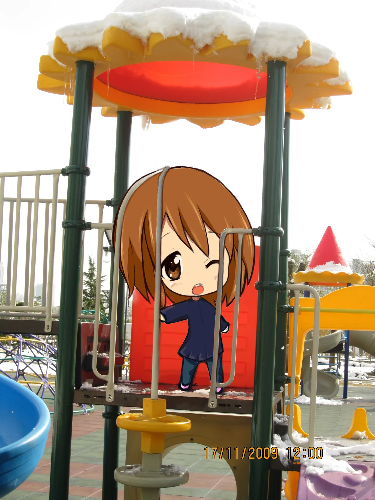 那个卡通人物不是素材,是画的,正因为背景很有意义所以没换,不怎么会PS的盛MM为了得到原图的背景还到处求人帮忙了
