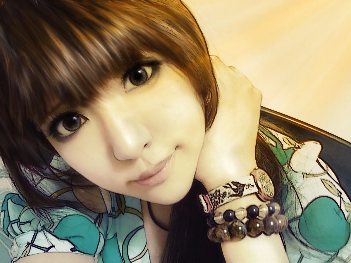 漂亮!肤色,头发咋弄的啊??教下我行不?