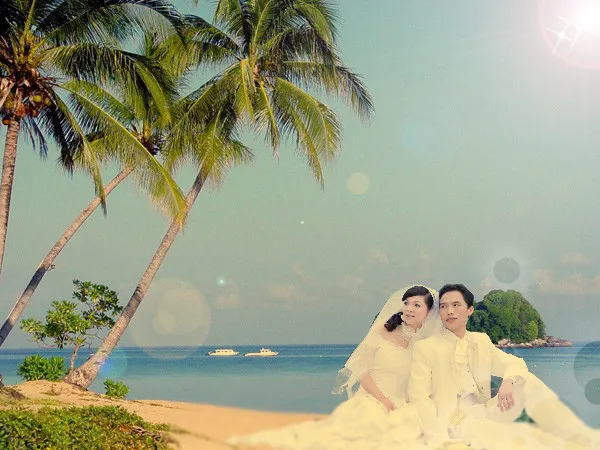 喜欢海边,一起看夕阳的感觉 给人物换一个好看的背景 艺术化:深度艺术化