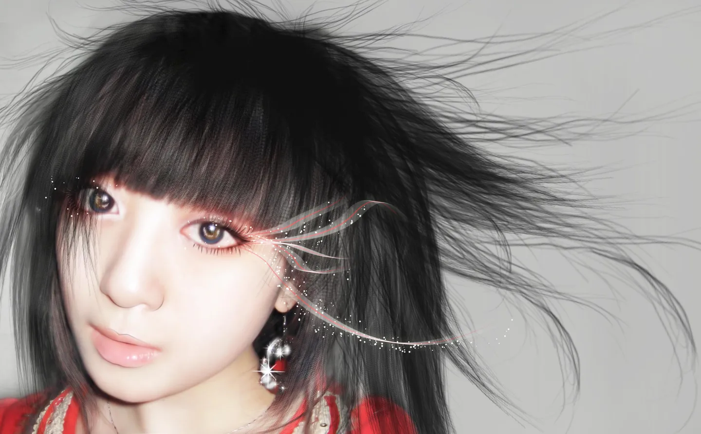 头发在飞舞