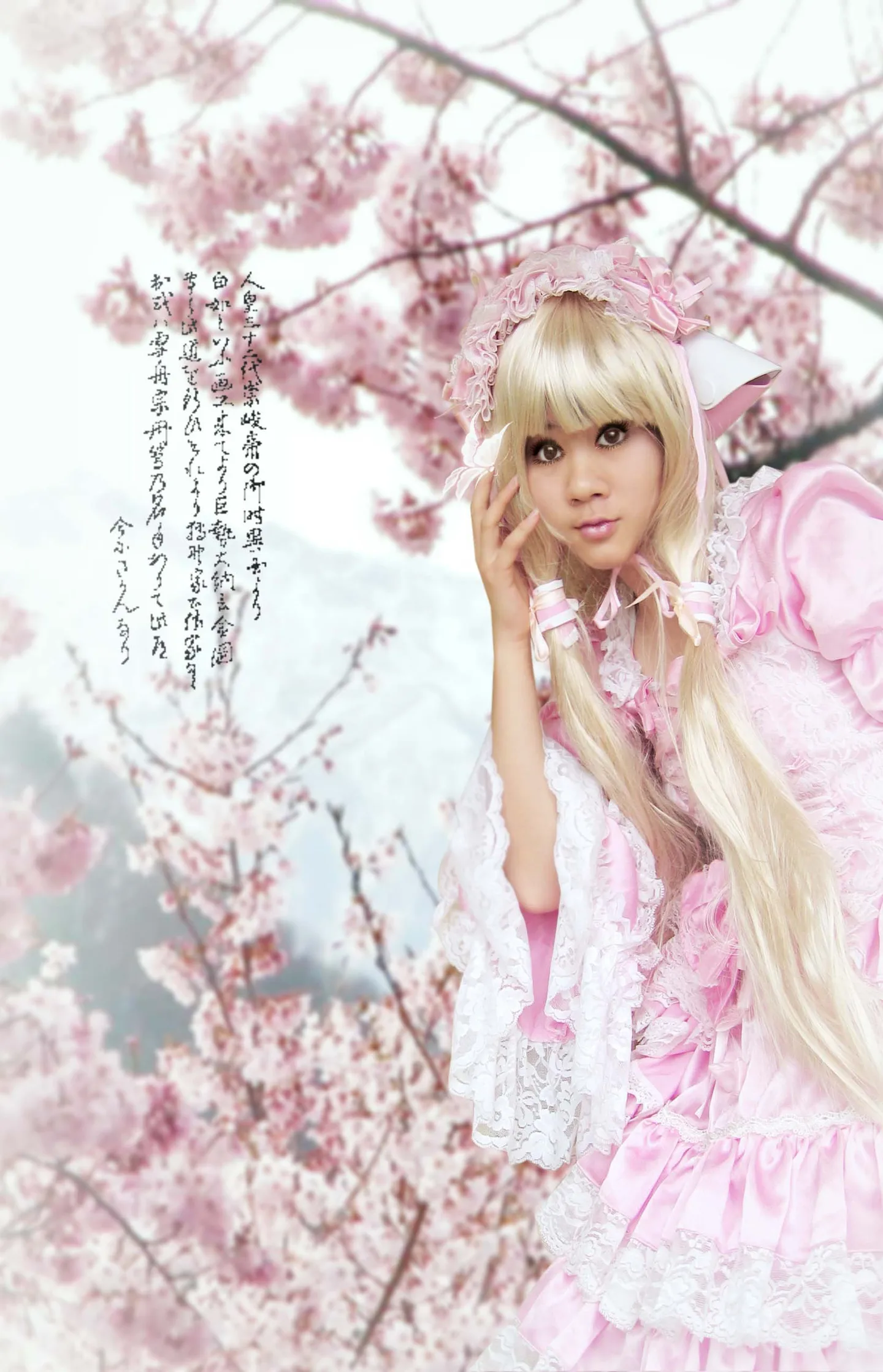 我是cos萌萌小叽哦~所以麻烦一下那位大大把我P的可爱点,假发旁边的黑色(我的真发)最好也把它弄金,人白点比较好吧~背景...能换的话最好也弄一下,樱花的背景就更好了,眼睛能弄成琥珀色(就是类似黄色)么?..我知道我要求多了但是参赛的相片很希望得到别人的赏识~所以~鞠躬~谢谢!