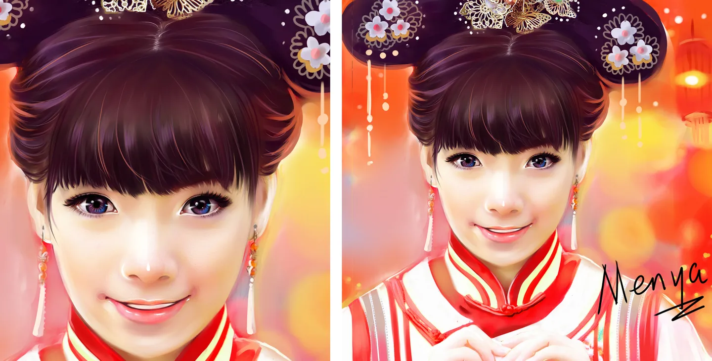 看了半天,只觉得发髻中间那个花饰是转的,其它都是画的吧。。。=。=