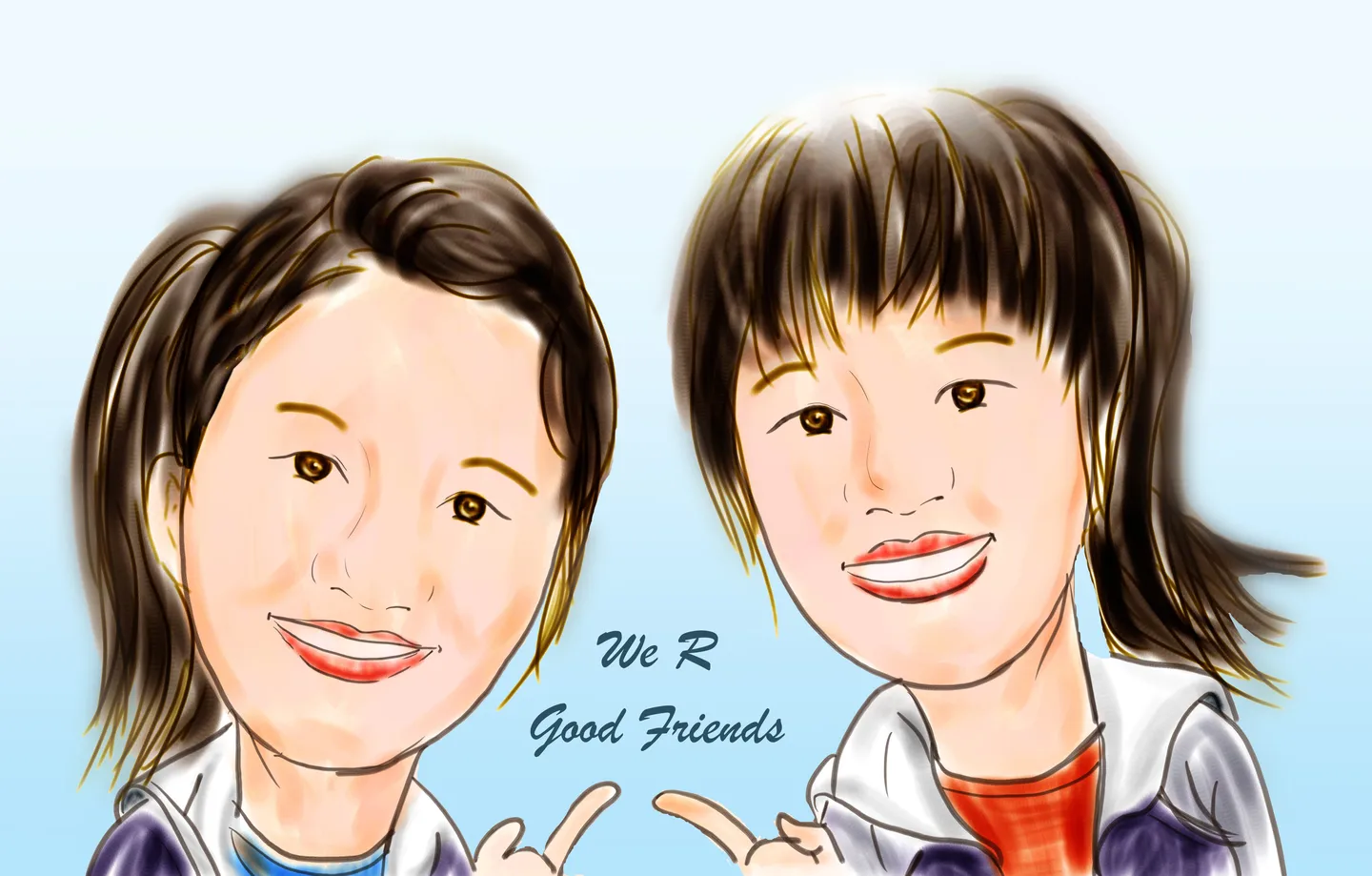 我想要张手绘的,卡通的也可以~ 这是我和我的好朋友 背景和情景换不换都可以,亲看怎么合适怎么做。 谢咯~嘿嘿