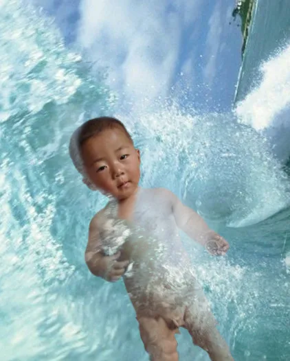 用途:家庭纪念 基调:欢悦明快的 背景:作成水中游泳的样子,不要露着小东东啊,谢谢