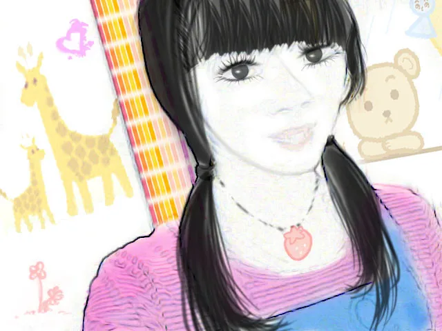 因为光线不够所以效果不是很好,希望做得清纯一点,可爱一点。适当修一下边幅,换个背景。