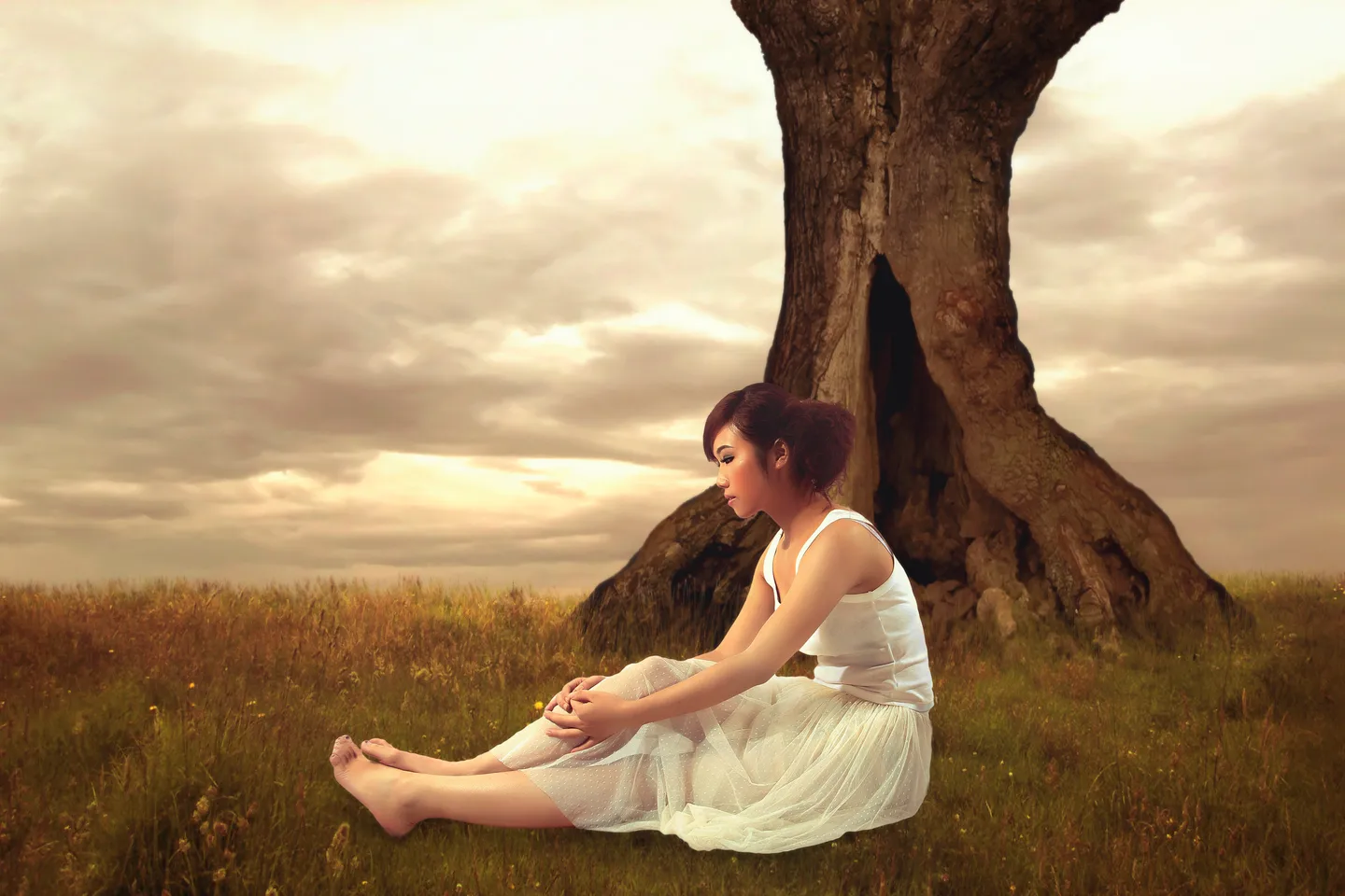 喜欢背后那棵树,喜欢这种静静坐着的意境!!求合成啊~~
