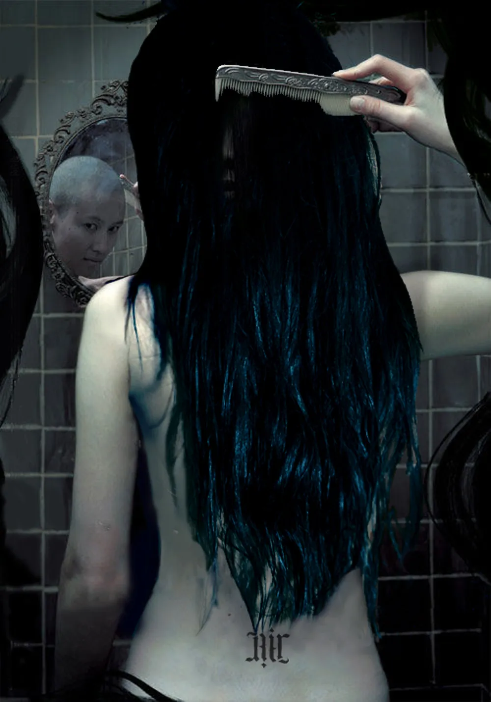我还看到头发里露出隐隐约约的嘴巴和鼻子...