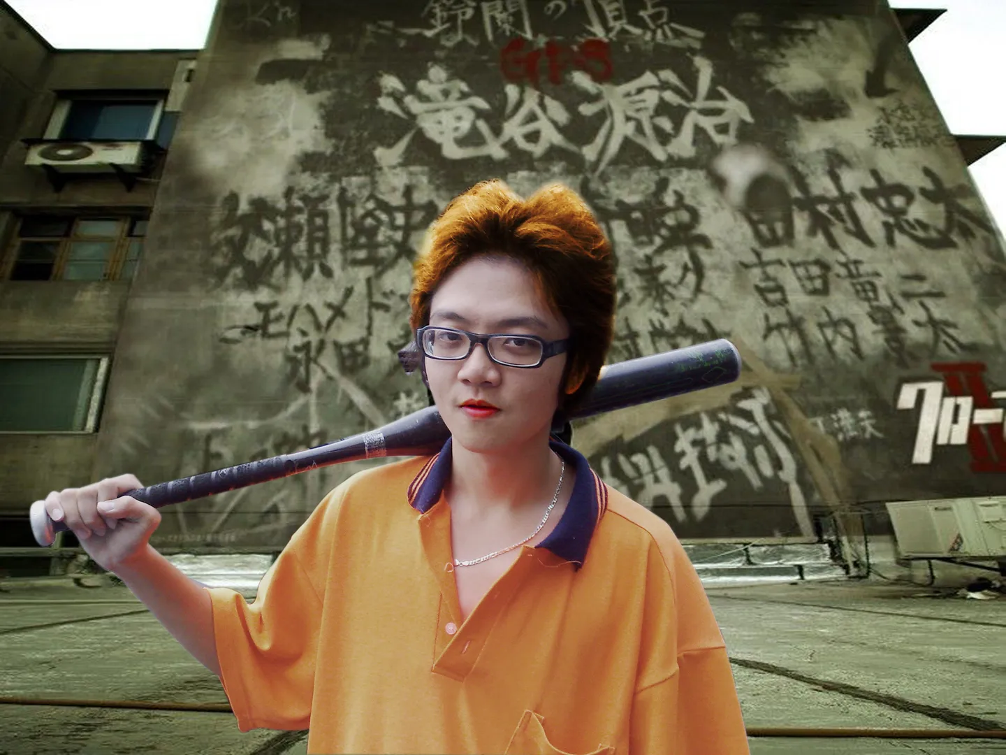 头发染黄 美个容?整成热血高校的感觉吧 最好背景换啦