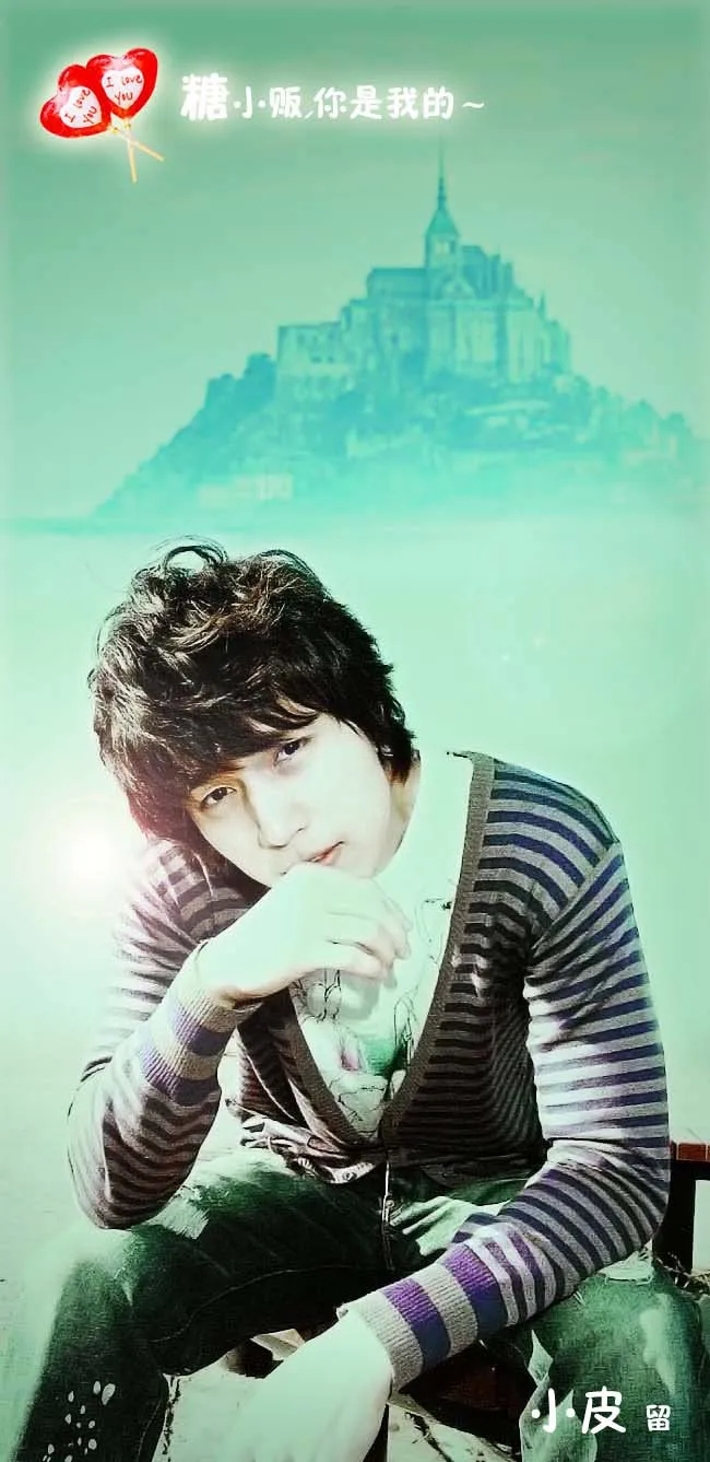 童话背景,突出主人公,头发整齐些,裤子处理下(好象太旧了啦),在图图的右上角写上:糖小贩,你是我的~ 左下角写:小皮 留 再加几个小的棒棒糖 把这小子弄的可爱点幼稚点呦,谢谢喽~ 用途:家庭纪念 基调:欢悦明快的 艺术化:深度艺术化 背景:朦胧化