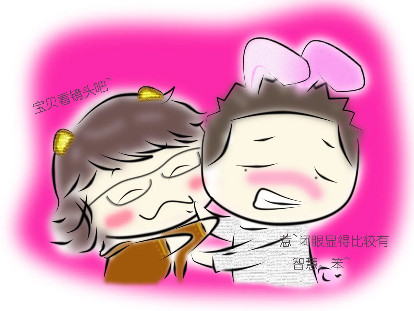 给神~~儿~~2个脑袋。。~~ 身子~~留给神创造吧~~~。。。。 最好给一个话个兔耳朵~~一个画成熊样儿~~ 恩恩~~~ 要麻烦DUZI画张拉~ 上次没画成。~~~这次。。~~。。嘿嘿。。。~~~ 谢谢啦~~