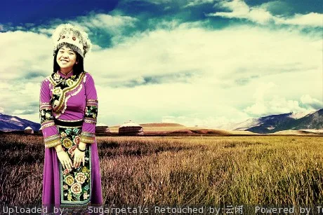 美化人物脸部 给人物换一个好看的背景, 和衣服比较搭配的背景 谢谢咯 基调:欢悦明快的 艺术化:轻微艺术化