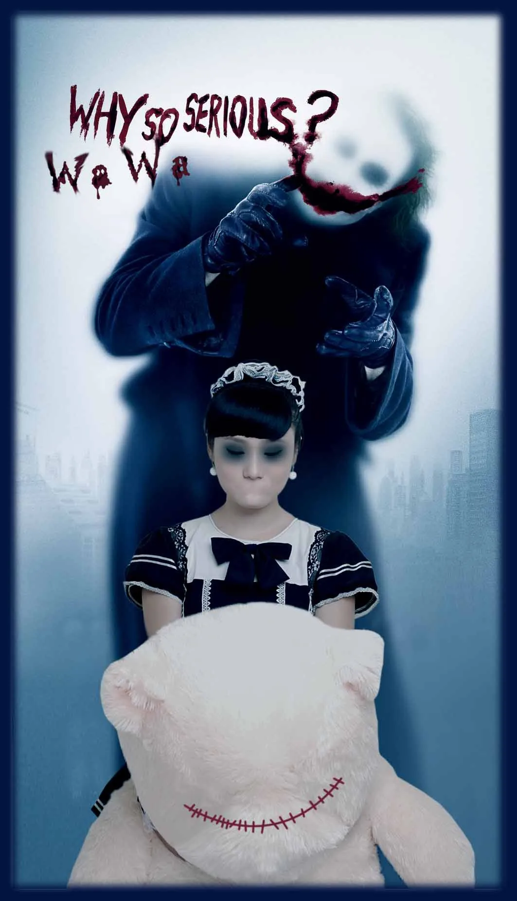 昨天鬼节耶~英文是:娃娃,你为什么那么严肃呢?
