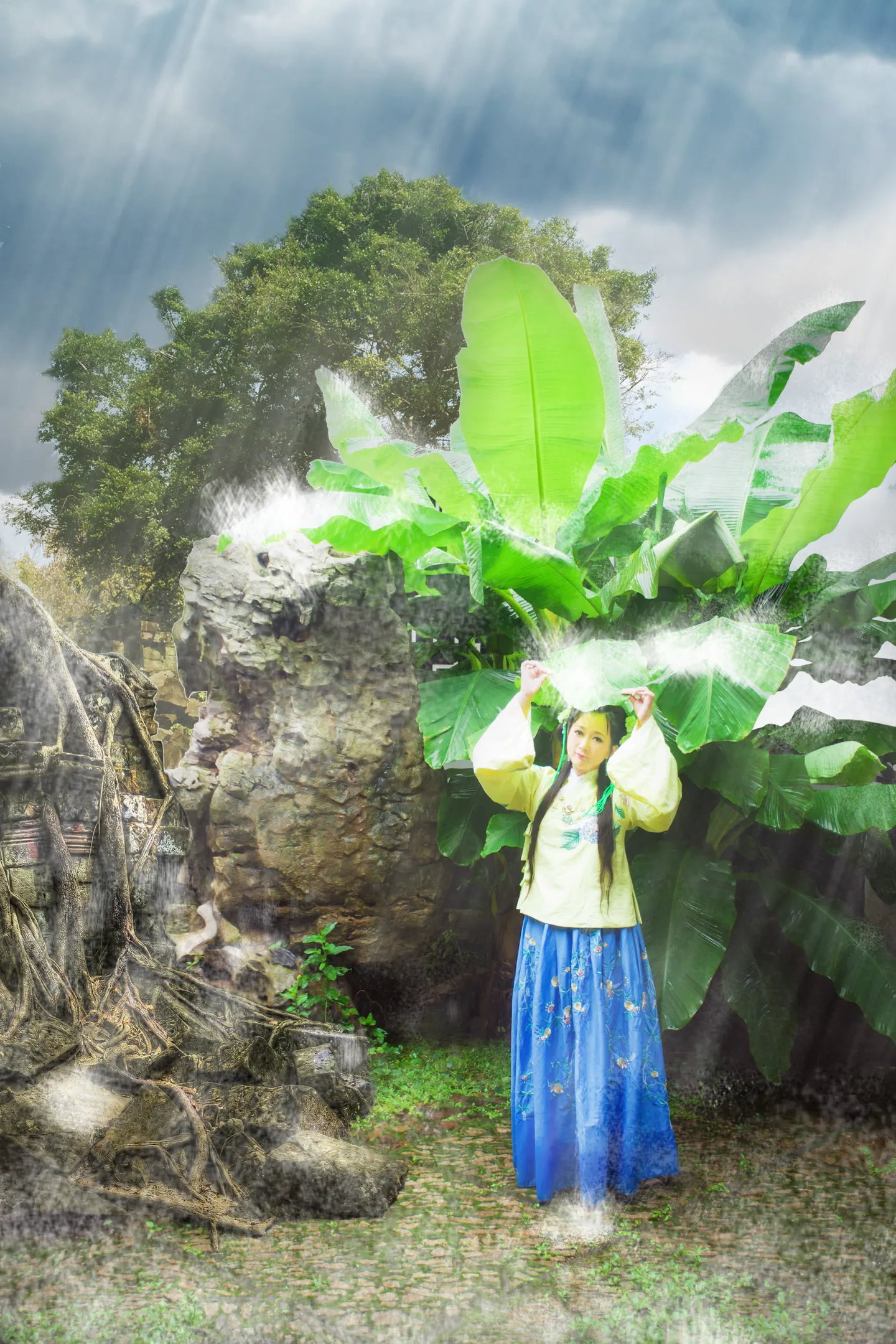 超赞,背景换的太巧妙了,荷花缸变成树根了,画面很和谐,谢谢F大神,大图抱起来