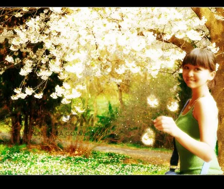只留下绿色衣服一个人, 美化人物脸部 给人物换一个好看的背景 用途:娱乐 基调:欢悦明快的 艺术化:保持真实性
