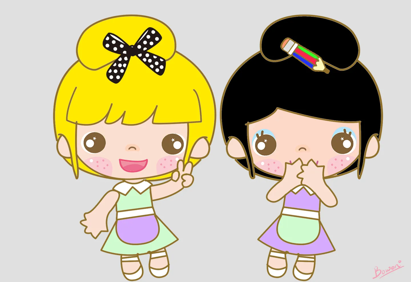 两个美女都是什么样的发型啊 ?是长头发么