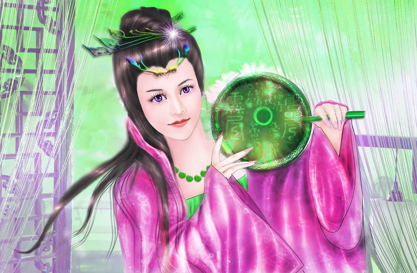 这个画得很好看,就是扇子是不是变成铜镜还是?