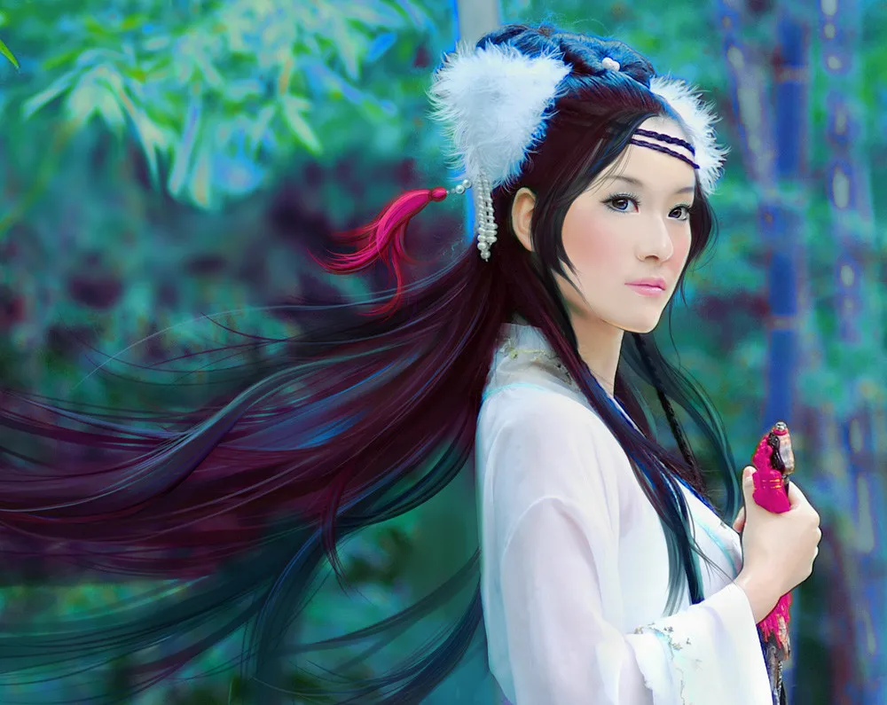 要画的。。 后面的头发修下。。。 不要哪个橡皮筋 艺术化:深度艺术化 换一个好看的背景