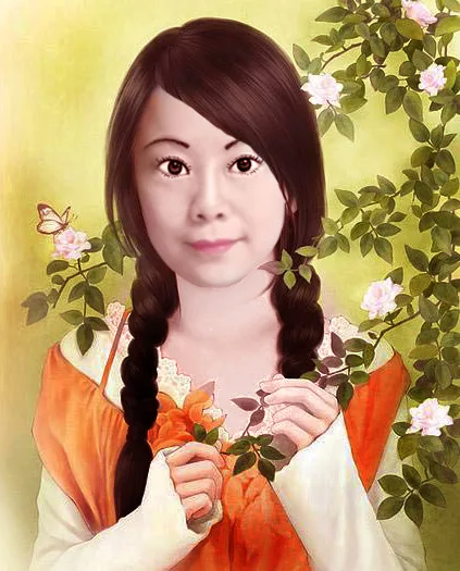 美化人物脸部 换一个好看的背景 手绘可以吗?最好给我弄一个适合的发型啊!谢谢啦!