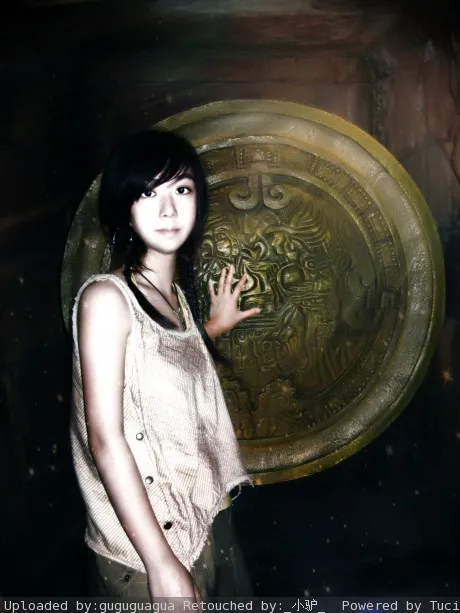 希望整体是比较有神秘气质的感觉,把脸和胳膊修瘦一些,肤色均匀一些,保持原来的背景,可以修饰。