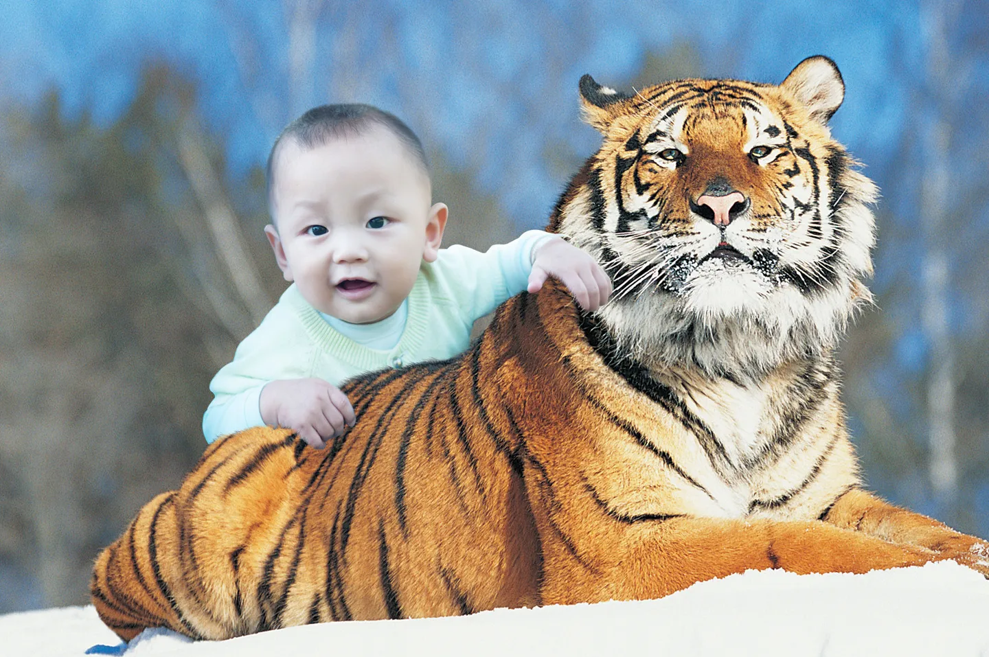 这宝宝厉害,帮老虎捋胡子!真是无知者无惧啊!