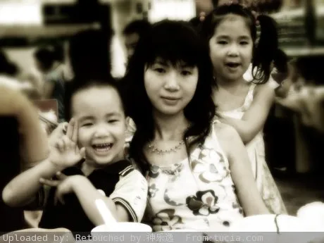 把背景模糊了 做那种好像聚焦那种效果 其他效果自由发挥哈 然后写上一点好看好听的英文 例如 开心的一家之类的 谢谢了 用途:家庭纪念
