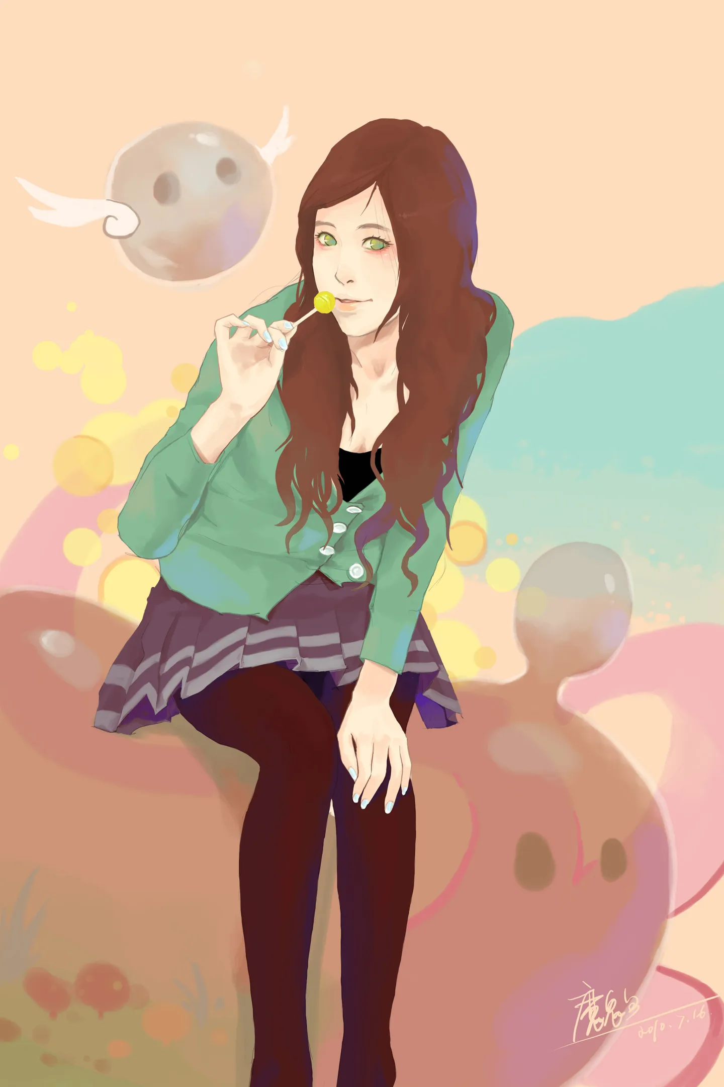 边吃棒棒糖边画糖水片.好享受哇~