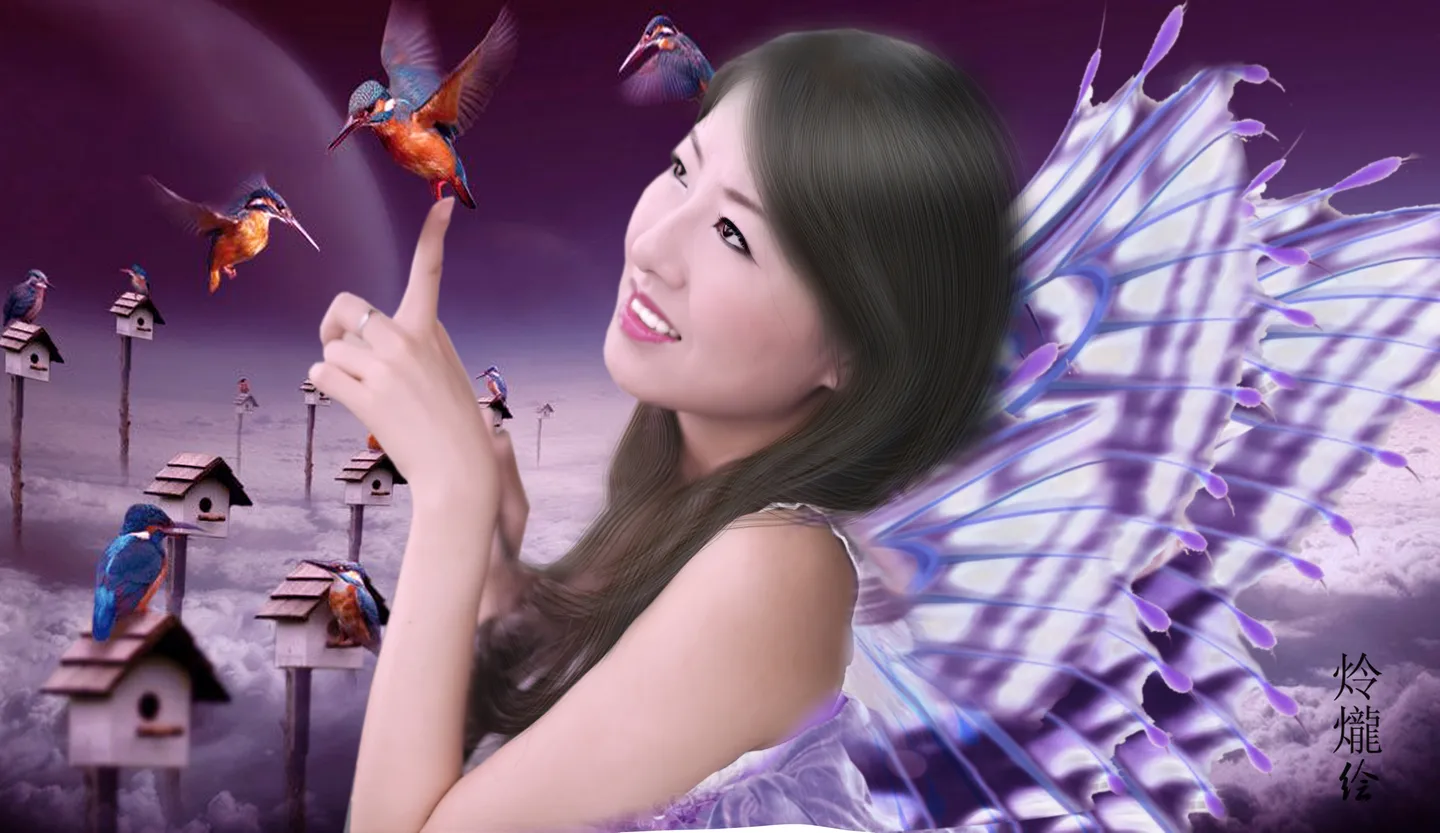 晓晓变蝴蝶仙子了,好美,头发也是手绘的呢