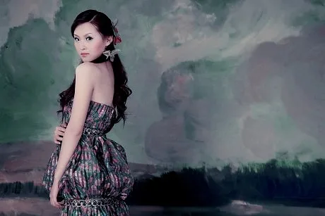 请把整体修饰更华丽一些,突出人物 给人物换一个好看的背景 艺术化:轻微艺术化 基调:典雅唯美 美化人物脸部