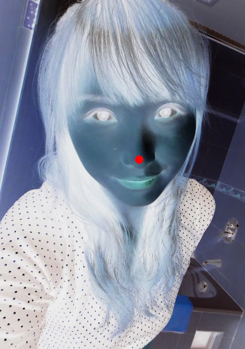 呵呵 做个好玩的 !! 你看着鼻子上的红点30秒! 然后转头看着白色墙不停地眨眼 就可以看到你彩色的照片了!!