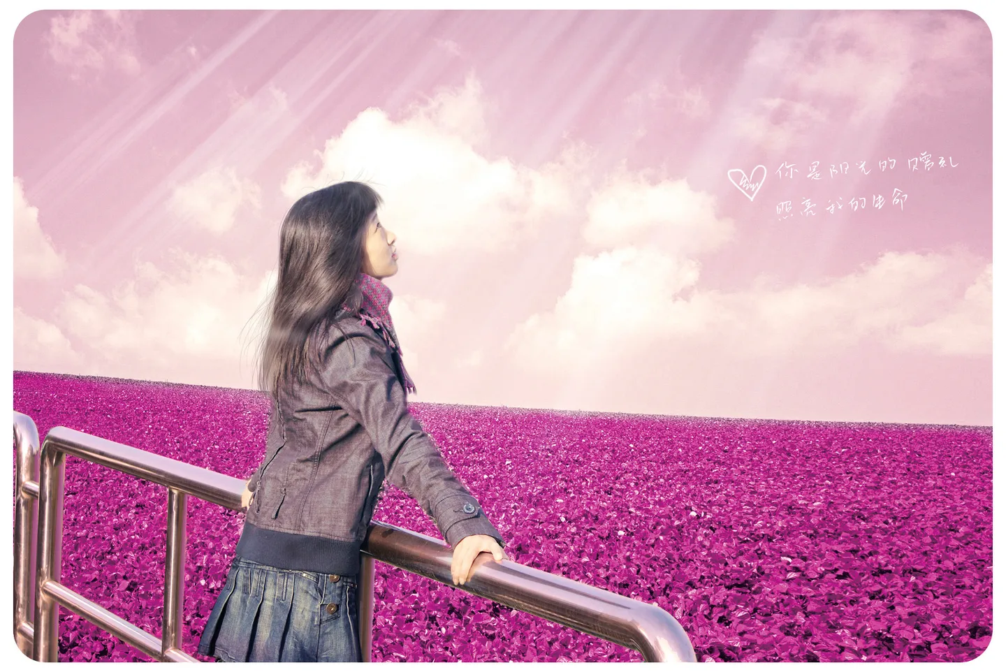 人物头发是靠手绘补的。。。第一次抠图的时候由于步骤错误,后来不得不再抠。。。于是栏杆挖的很粗糙。。。我实在是。。缺乏耐心= =