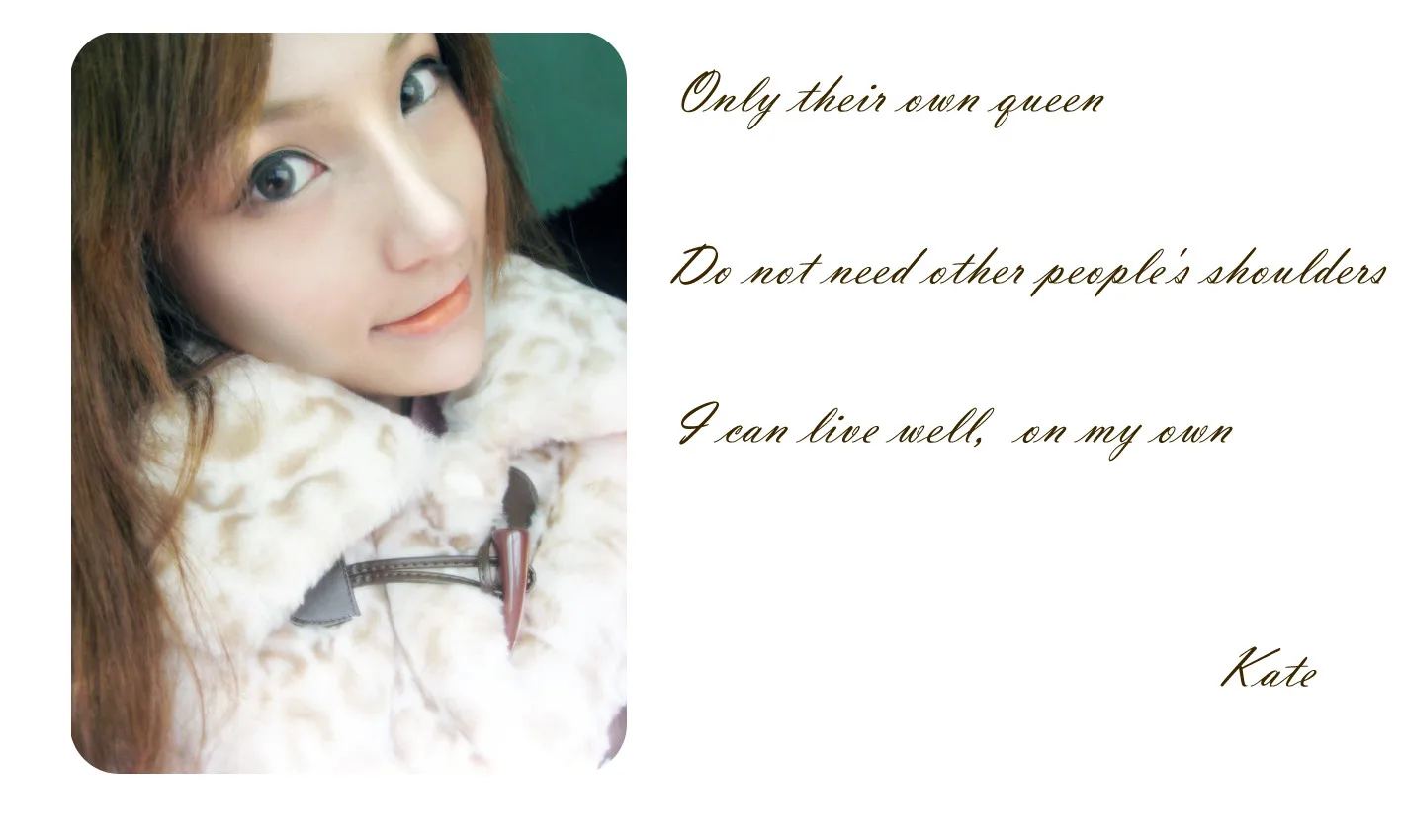你的英文名应该是Kate吧``我看你的用户名打的``