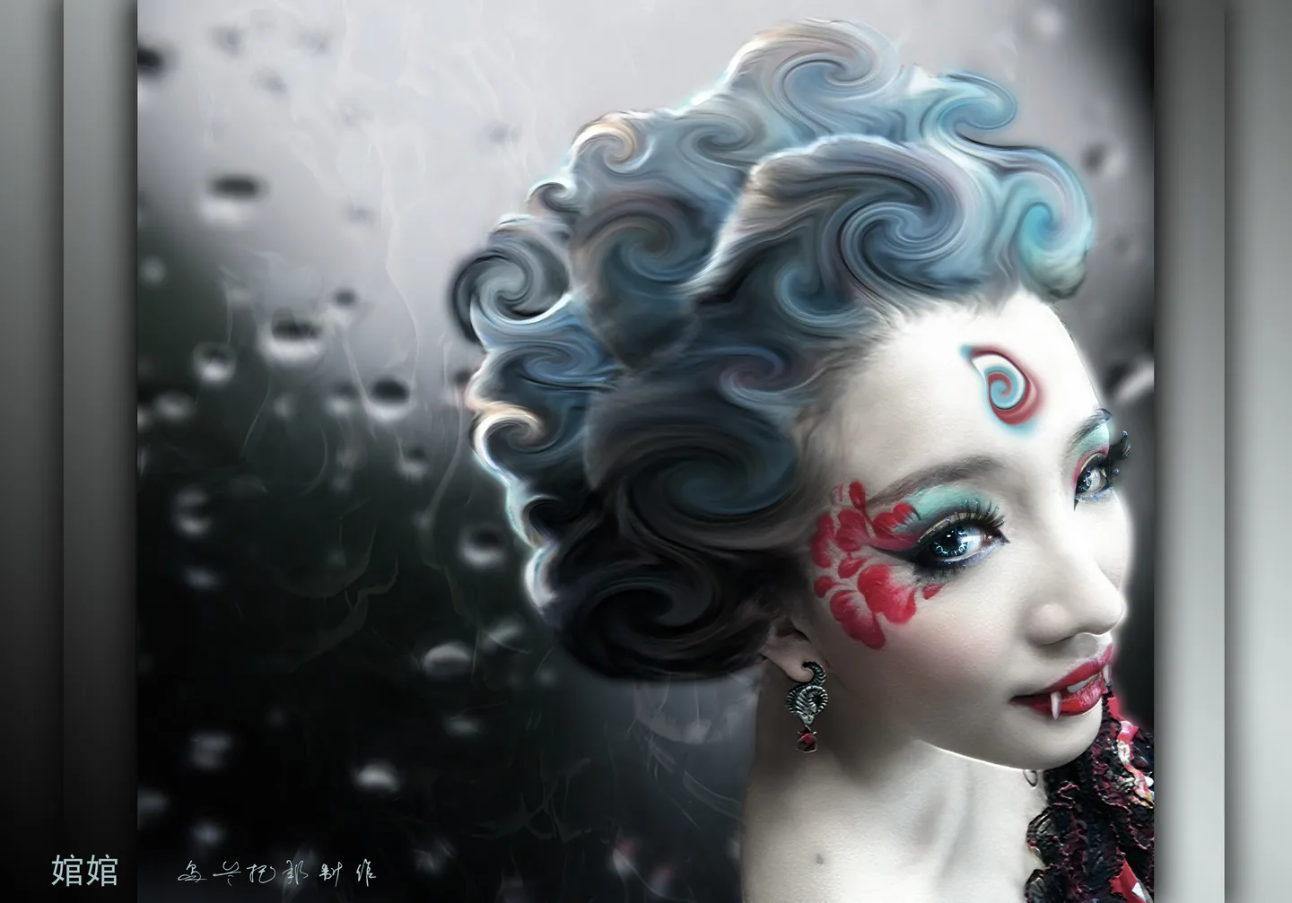 霸气的波浪发型。。。牙齿的位置不符合生理结构啊~~~ (表情)