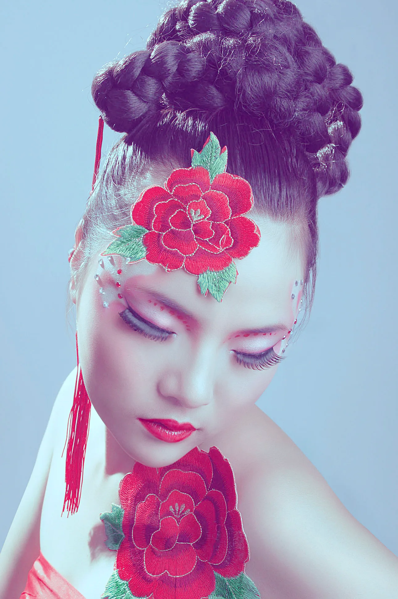 希望能把妆面P的精致些。或者很有feel~ 也可以。风格不限,设计师自由发挥哈~ 美化人物脸部