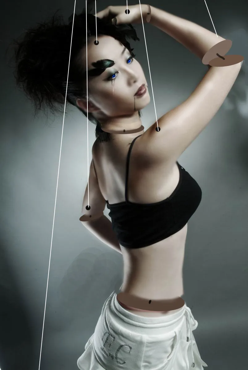 我也想要牵线娃娃~~木偶啊木偶~~谁来给我做张吧~~ 顺便帮偶修修脖子上的折痕and腰上的绳绳~~万分感谢~~鞠躬~~ 美化人物脸部 给人物换一个好看的背景 基调:严肃冷酷