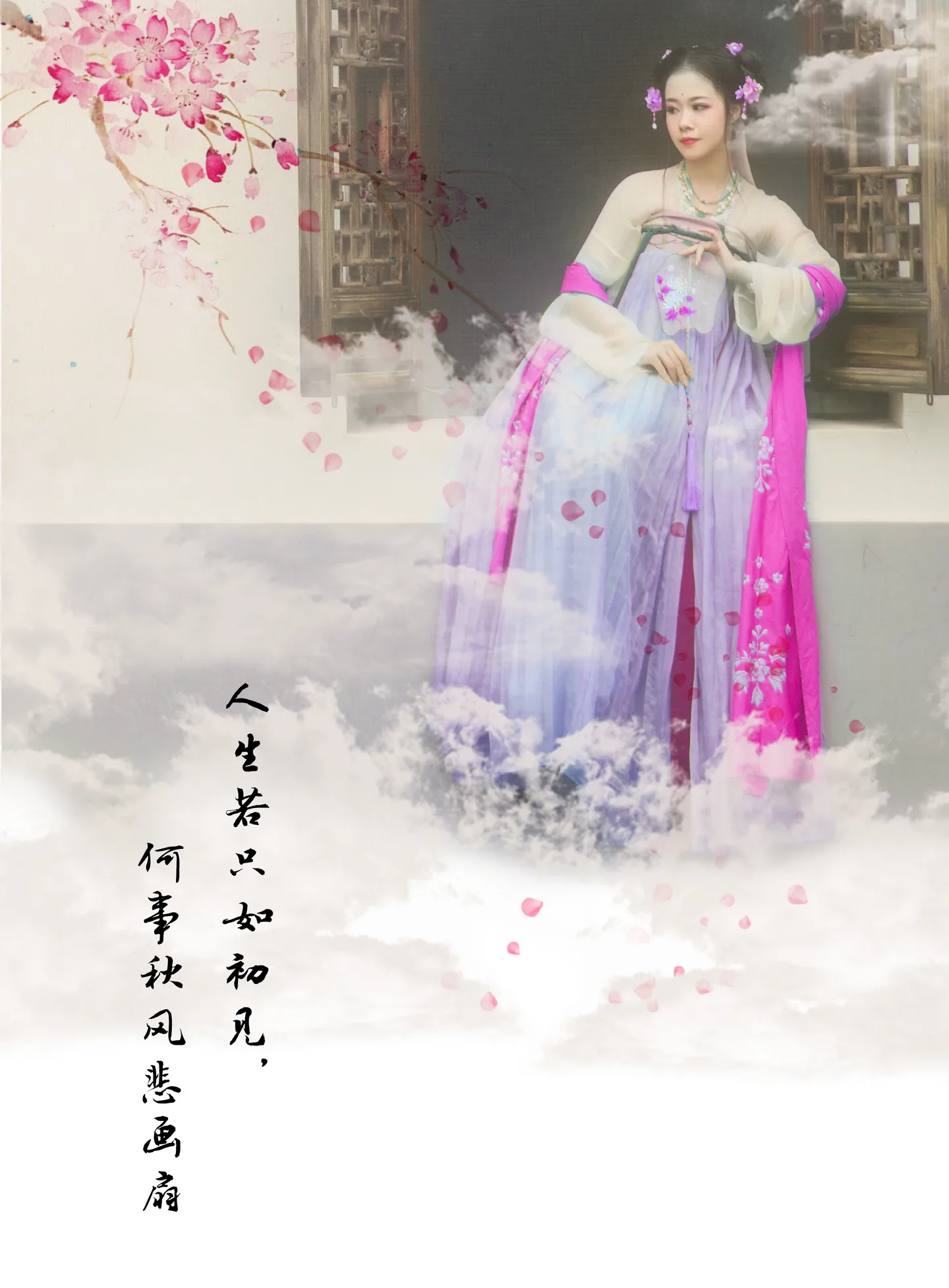 衣服换了颜色后是另一种韵味哦,花枝和云烟也好美,配词也好搭