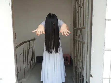 嘿嘿,其实原图不加背景直接P黑好像还更恐怖一点的~