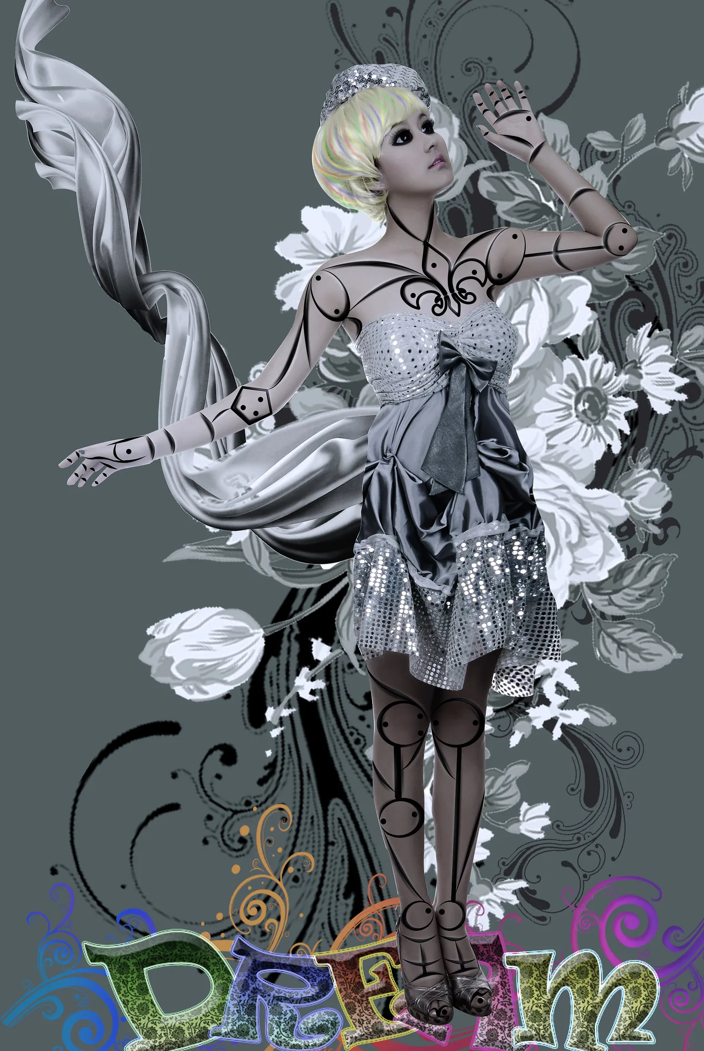 再来就是觉得 合成整体的调色有难度 背景图单看是一种颜色 但我却用了很有步骤才有的颜色..到最后和人物还是可以搭配的.这点我自己自喜..呵呵 ..