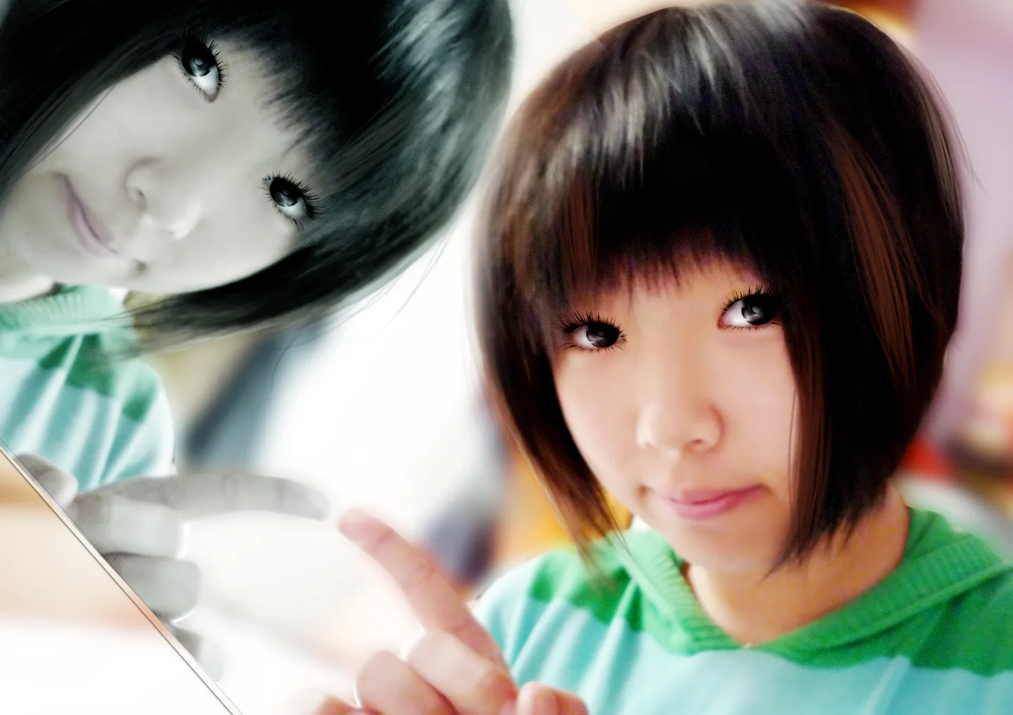 把背景换掉,主人公变白一些,最好左边换成镜子的那种,有对影的那种,随便啦,好看一些啦.谢谢谢谢你啦,好崇拜你啦..
