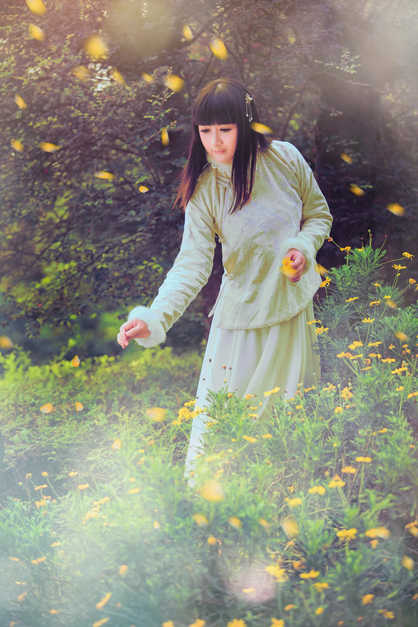 黄花瓣飘得和动作好配合……