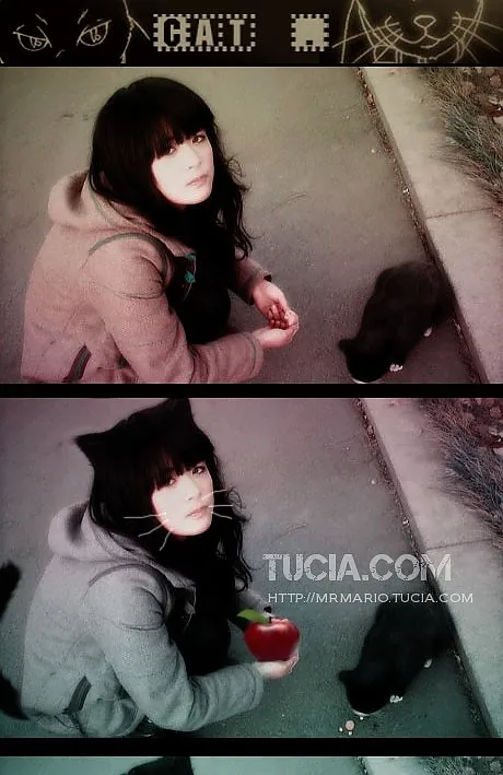 突出人物和小猫、有意境、不喜欢人脸改动太大、谢谢~