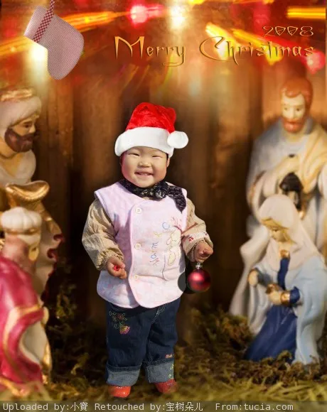 麻烦烘培师帮帮忙~o(∩_∩)o... p成圣诞节欢乐明快的样子~~ (*^__^*) 嘻嘻…… 刷图表接吖~ 谢谢谢谢~ 用途:家庭纪念 基调:欢悦明快的 艺术化:轻微艺术化 背景:稍作调整