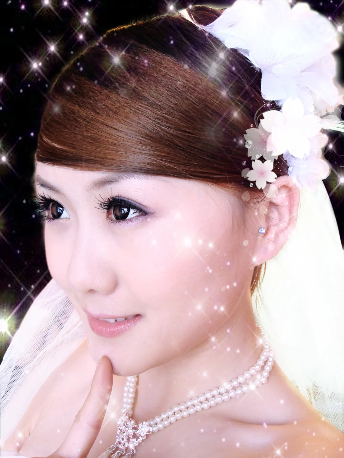 我是一个化妆师,主要是新娘妆,这是我朋友来帮我拍的样片,但是摄像机不是很专业,水平也有限,所以效果不是很满意,我想哪位朋友可以帮我把照片处理一下以备我宣传用,另外我们可以长期合作。此片要求,背景去掉,脸部干净一些就好,额前有几丝乱发要去掉,最好有那种梦幻的感觉,但不要影响到妆面,因为本身就是淡妆,拍的也不清晰。谢谢了^_^我QQ:86353670 基调:典雅唯美 背景:朦胧化