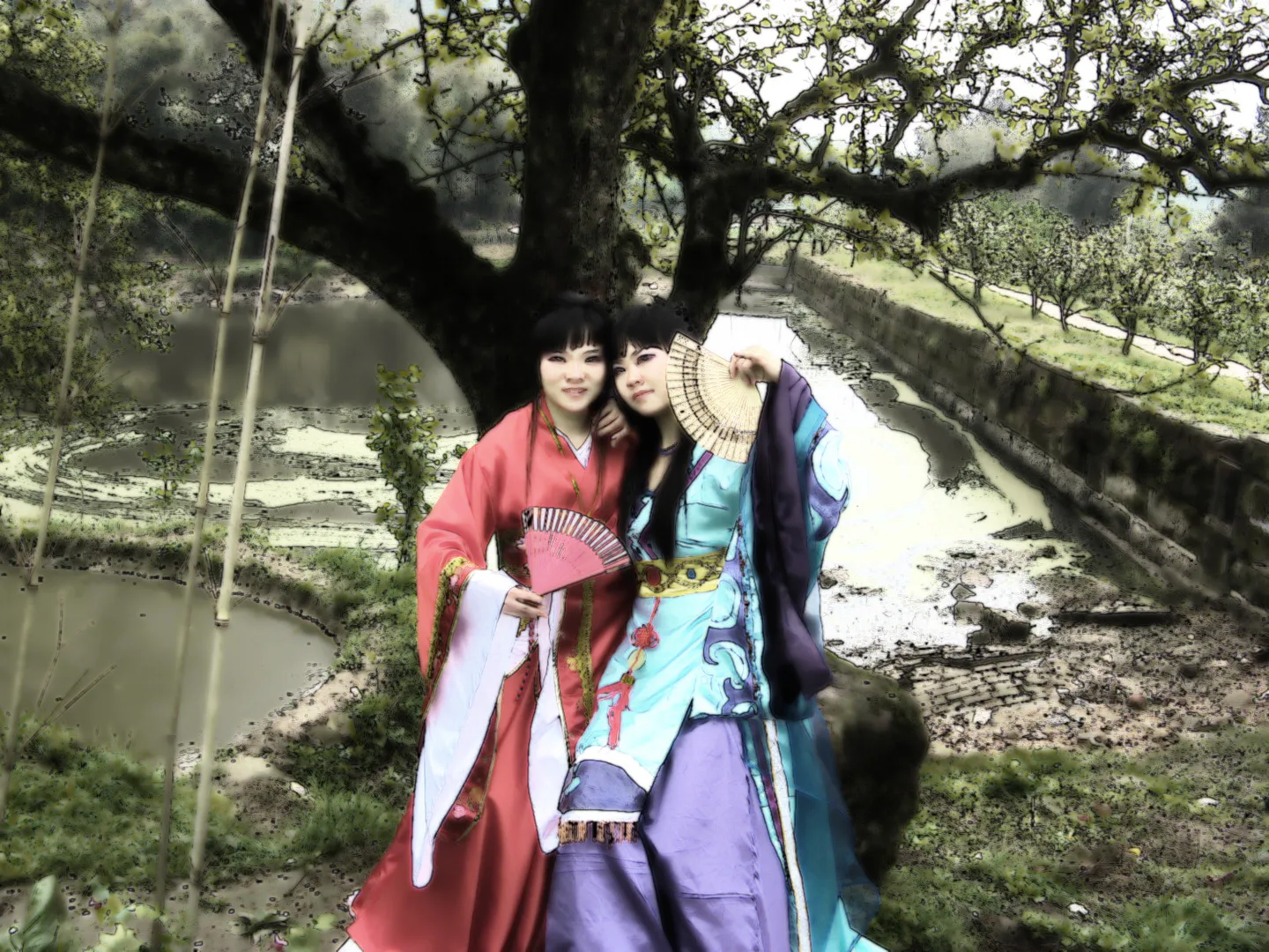 古色古香一些,要是能吧前面那两根讨厌的竹子去掉就最好了~~~古典风格一点,谢谢。 背景:稍作调整 基调:典雅唯美