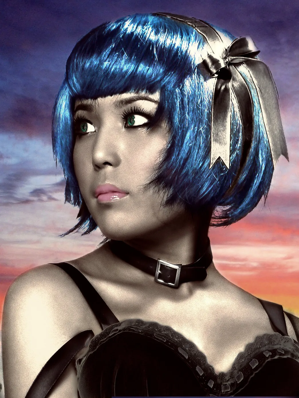 嗯啊!黑头发变蓝了,黄发带变灰了,黑眼睛变绿了,衣衣肤色都黑了。小鬼你神气的,把小燕变好黑!