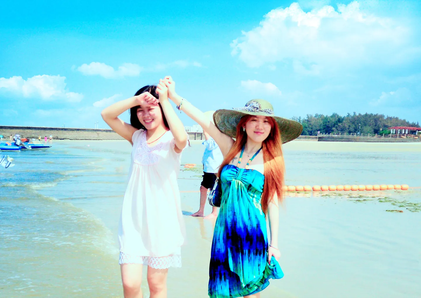 除了綠色裙子的,把其它多餘的人去掉,變成單人照